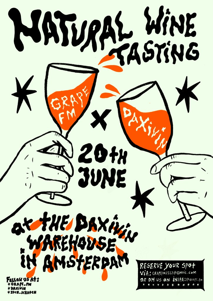 A poster for a wine tasting, commissioned by GrapeFM, in collaboration with Daxivin.