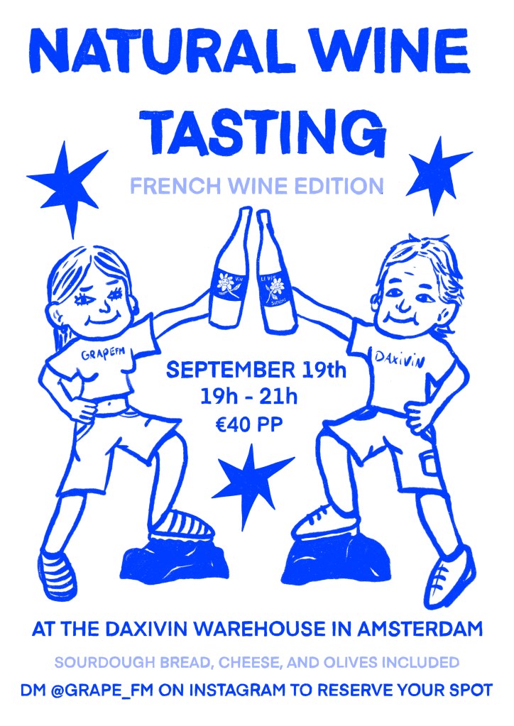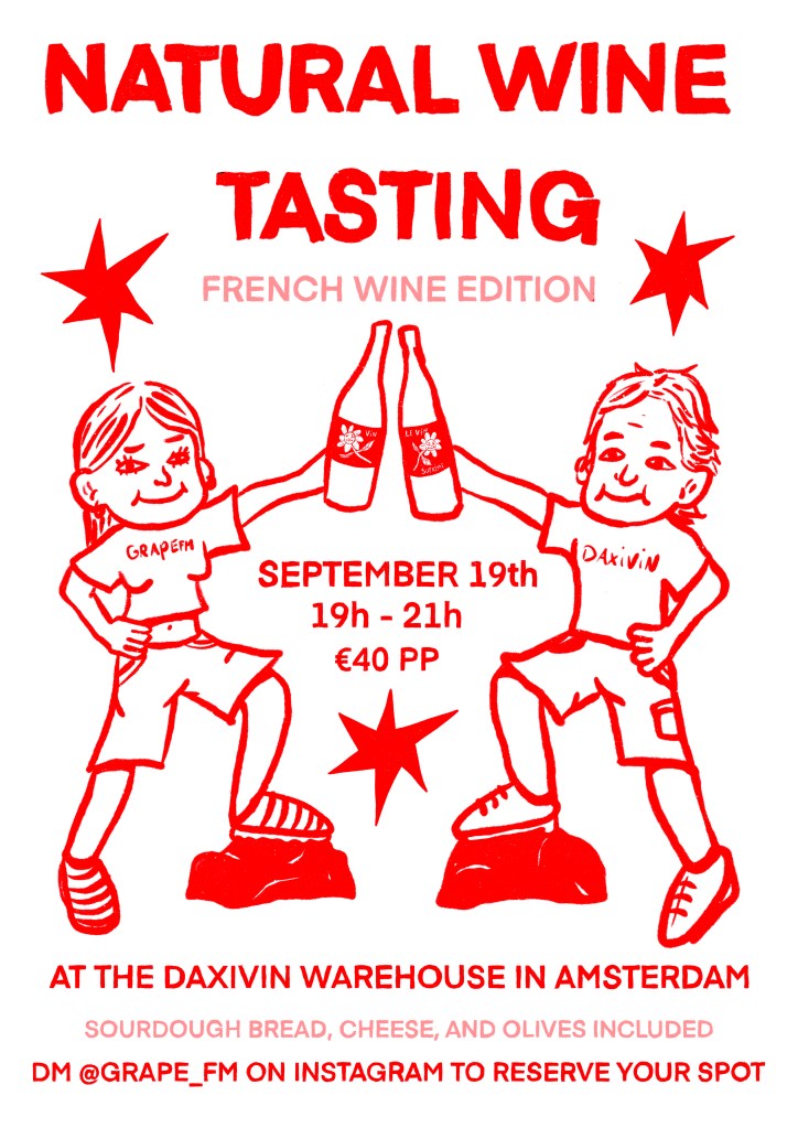 A poster for a wine tasting, commissioned by GrapeFM, in collaboration with Daxivin.